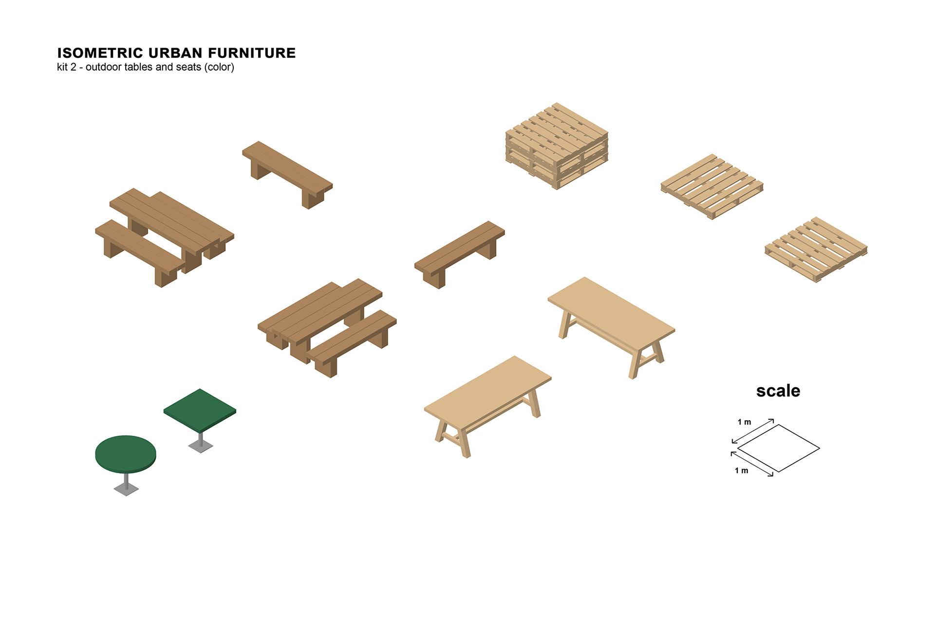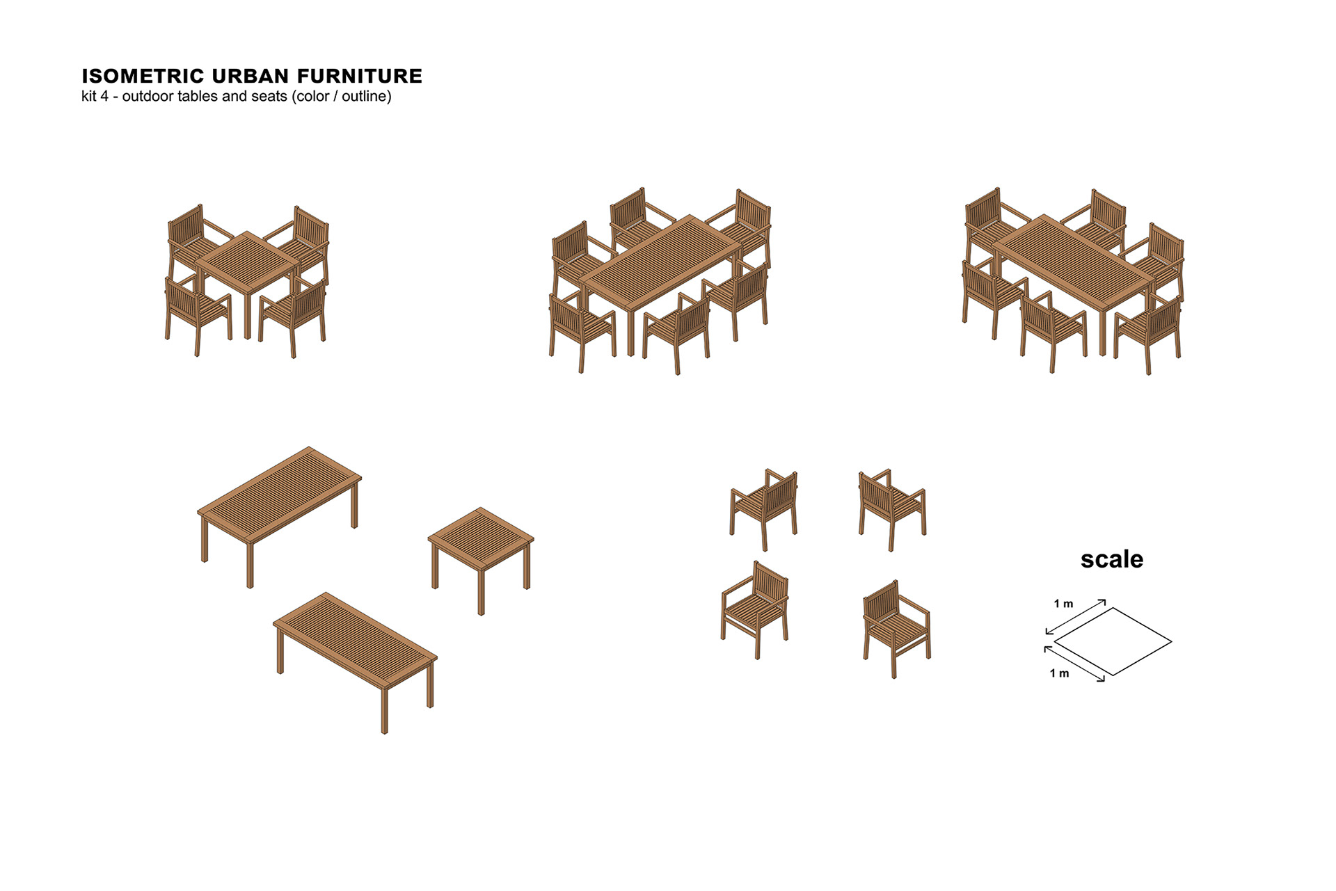 Этот набор из коллекции изометрических изображений уличной мебели включает в себя скамейки, столы и сиденья в формате Photoshop (PSD). Такие иллюстрации можно использовать в иллюстрациях для архитекторов и урбанистов. Вы также можете скачать этот файл в формате EPS